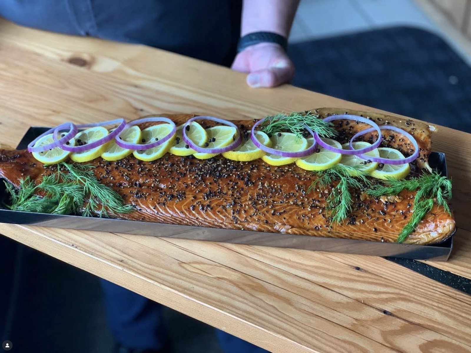 Elevate your holiday table (or any special occasion) with our signature house-smoked salmon. Slow-smoked in-house and served on a bed of fresh kale with lemon garnish, this gorgeous platter is ready to serve — no prep required.